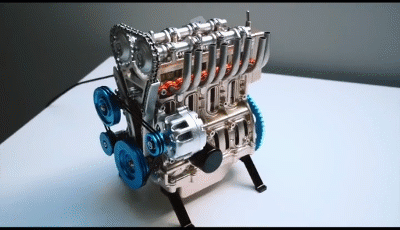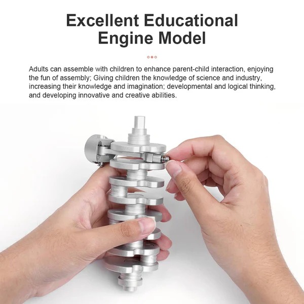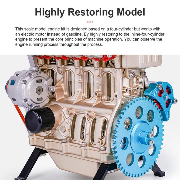 The 4 cylinder car engine build kit is designed based on Inline gasoline engine, but work with electric motor instead of gasoline. This four-cylinder engine kit packed with a metal box. So people has to assemble the parts and components. The whole process is close to the professional assembly line process. It is interesting and full of experience.